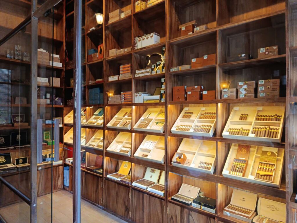 Complementing the cigar experience is an impressive range of top-shelf wines and premium spirits. From rare vintages to smooth whiskies and expertly crafted cocktails, the lounge caters to those with discerning tastes, making it an ideal destination for both cigar and wine lovers.